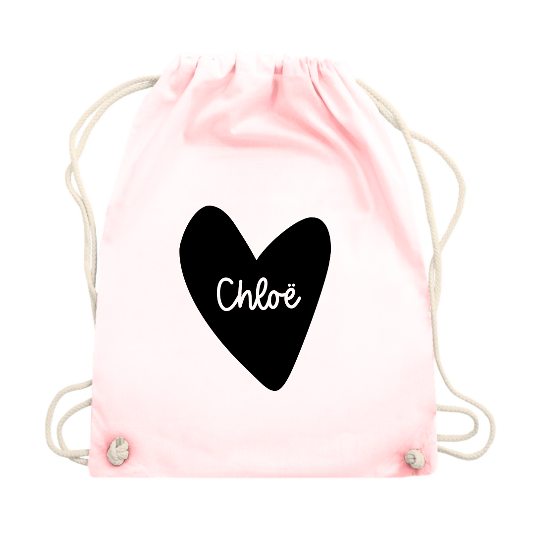 Het hartje ontwerp maakt deze gymtas extra vrolijk, schattig en persoonlijk. Door de naam op de tas wordt deze gymtas extra persoonlijk en uniek.