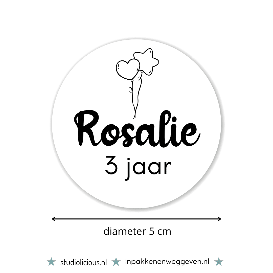 Is jouw zoon of dochter binnenkort jarig? Deze naamsticker met ballonnen is super leuk om verjaardag traktaties te personaliseren. Je kunt deze stickers apart bestellen, of in combinatie met kant en klare kindertraktaties.